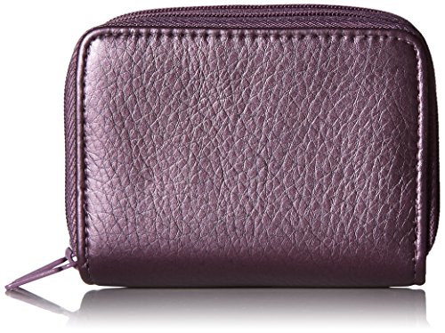 This Plum purple Double Zip RFID Wallet by Buxton is a stylish and trendy way to stay organized on-the-go. This animal friendly faux leather wallet features two zip around compartments for extra secure storage. This adorable and compact wallet features RFID blocking technology to guard your credit cards from identity thieves with external scanning devices, or electronic pickpocketing. The first compartment includes 3 divided pockets where you can store anything from cash to gift cards. The additional gusseted compartment has 12 accordion style card slots to help keep your belongings organized. The exterior of the wallet features a clear finger glide ID window. Measures 3.5" x 4.5" x 1